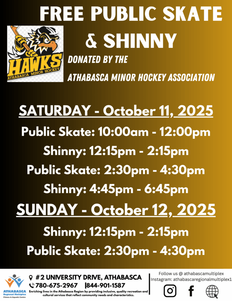 READ MOREThe Athabasca Minor Hockey Association has donate ice for October 11 & 12.