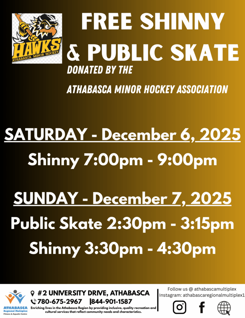 The Athabasca Minor Hockey Association has donated ice for December 6 & 7.