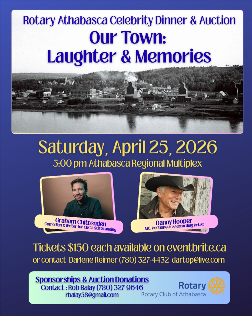 The Rotary Club of Athabasca will be hosting their Celebrity Dinner & Auction on April 25!