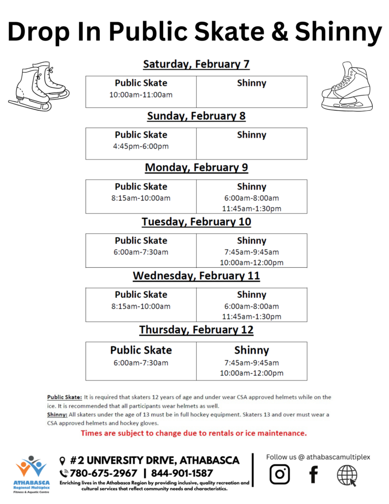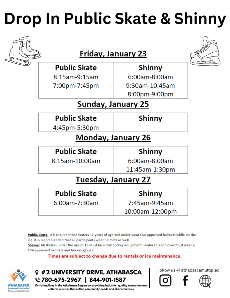 The Athabasca Regional Multiplex offers many different programs throughout the year: From Drop-Ins, Summer Programs and Registered Fitness Programs that are designed to enhance and enrich the engagement of the residents and community of Athabasca. Please visit their respective pages to learn about new initiatives and program guidelines.